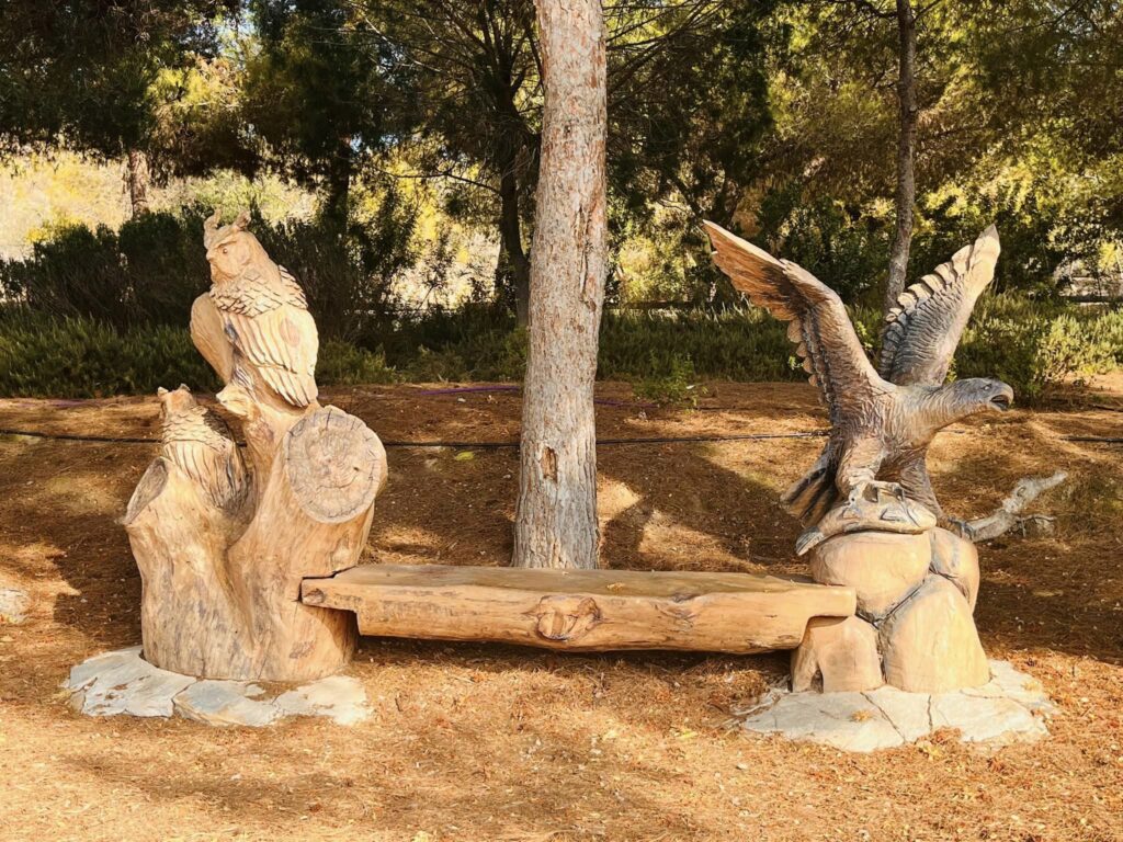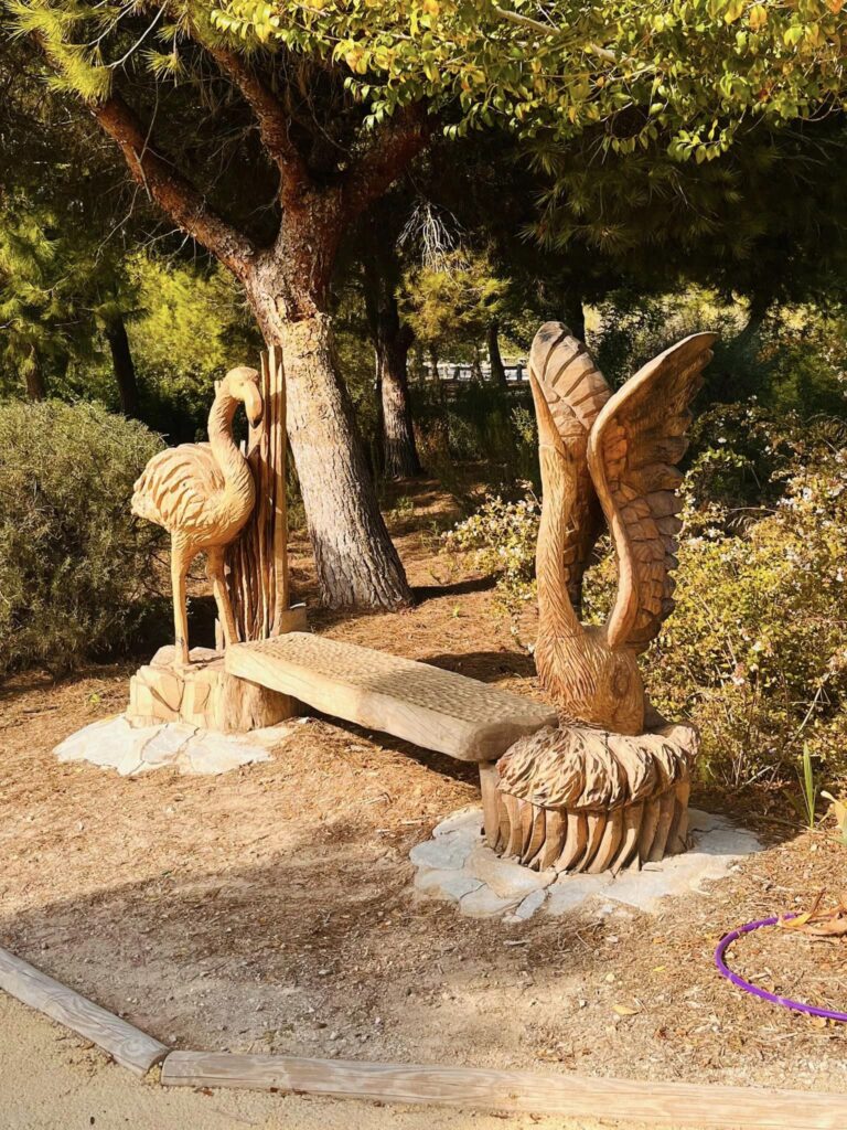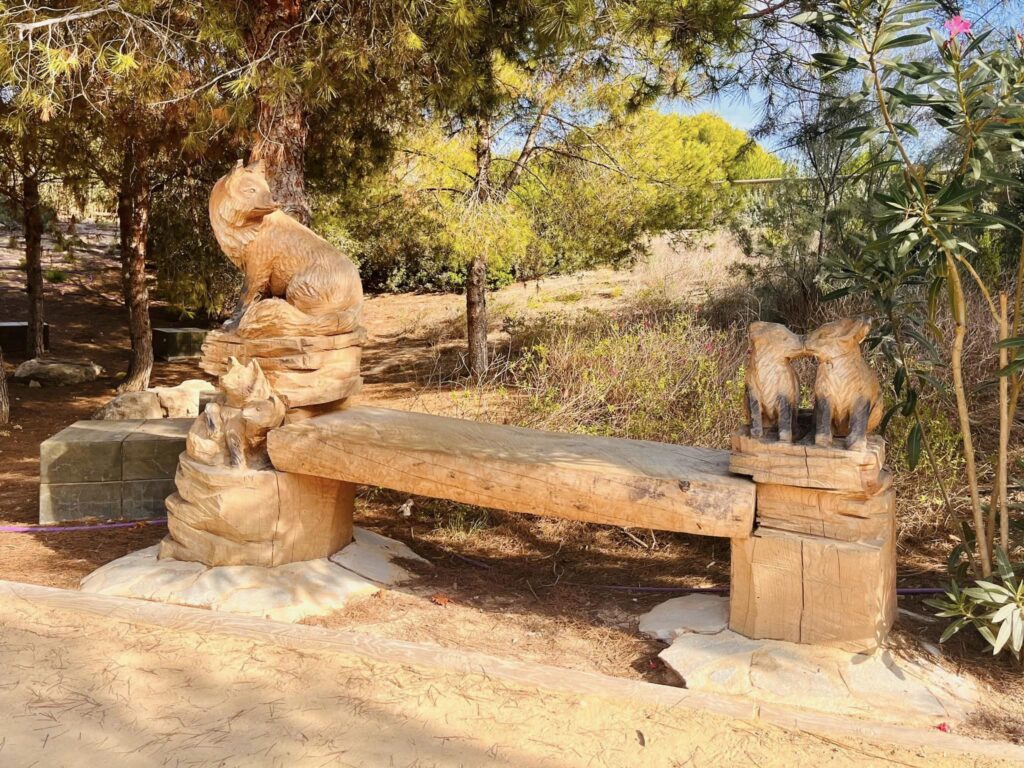 K dispozici jsou dětská hřiště a po celém parku jsou rozmístěny sochy zvířat vyřezávané ze dřeva.